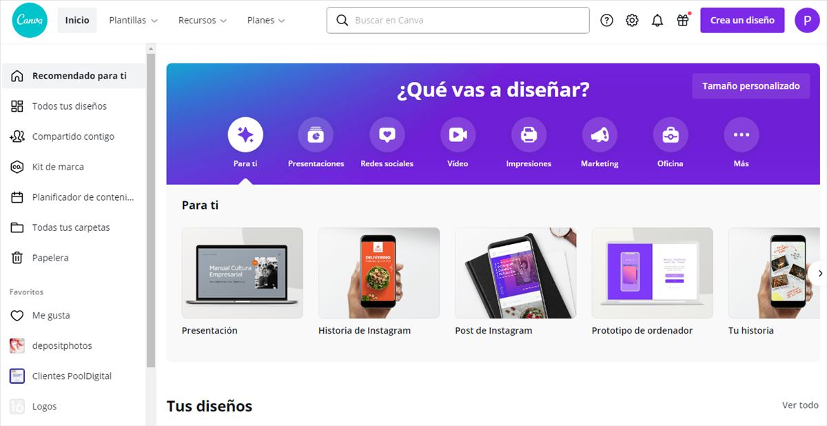Te sorprenderás de la cantidad de páginas que admiras que usan esta herramienta para crear sus diseños y han logrado ubicarse como referencia en la creación de contenidos. Con las plantillas y herramientas de canva el diseño es fácil. Crea tu propio diseño o personaliza una de nuestras plantillas. Canva tiene cientos de plantillas disponibles para ti que puedes usar y personalizar en unos cuantos minutos o puedes crear tu propio diseño para que sea exactamente como lo necesitas. ¡rgeístrate y comienza a diseñar! Con la gran variedad de tamaños de posters, opciones de papel y acabados que ofrecemos, obtendrás el diseño que quieres, al precio que necesitas.. Es una plataforma que te permite diseñar material publicitario sin programas o conocimientos previos de diseño.
